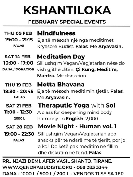 Ne kemi klasa tรซ rregullta nรซ Tiranรซ dhe fundjava meditimi jashtรซ saj.