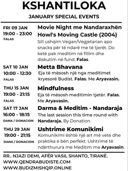 Ky seksion paraqet përkushtimin e Kshantiloka-s për të ndarë mësime autentike të Darmës, teknika meditimi dhe praktika komunitare që mbështesin rritjen personale dhe harmoninë kolektive.